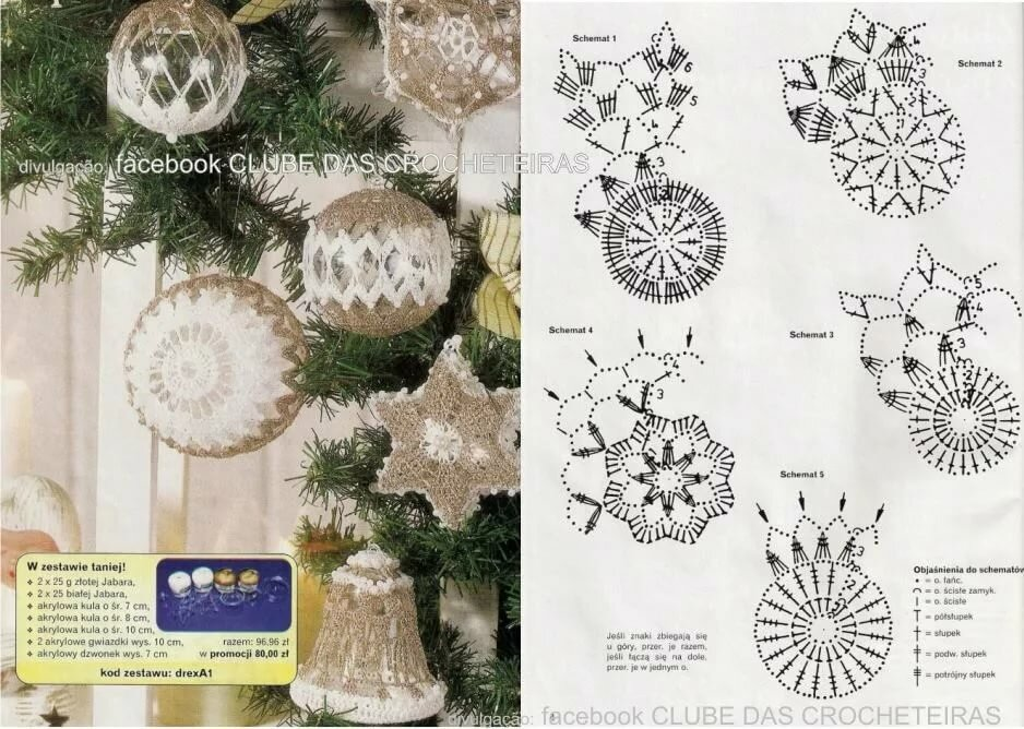 Елочные шары обвязанные ажурным узором.