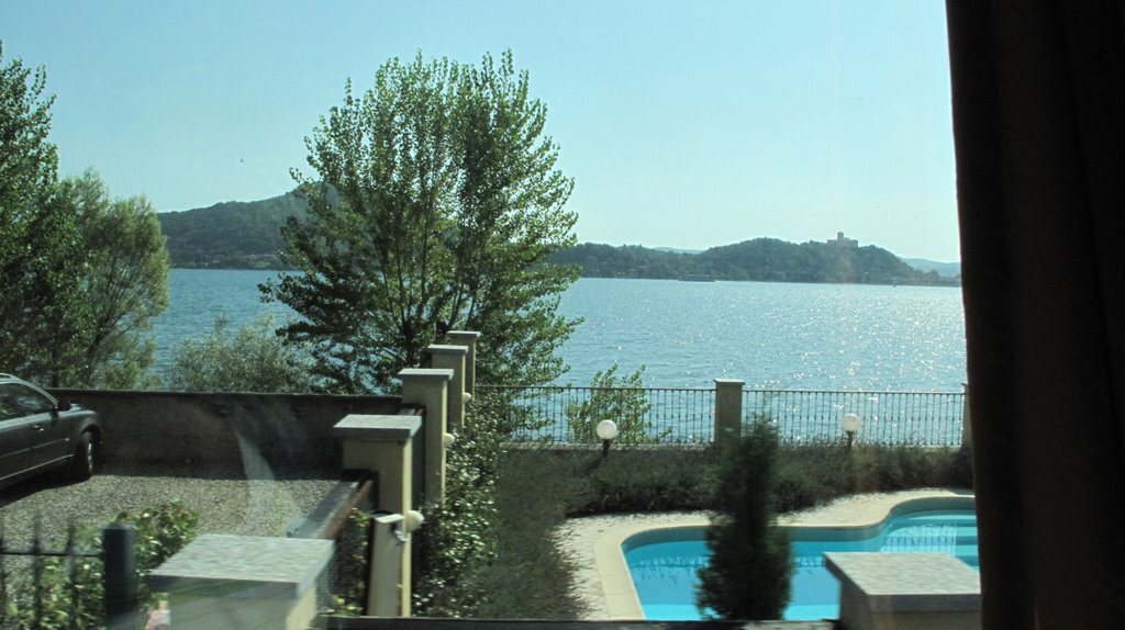 сфотографировались с пушкой, вышли на террасу, посмотрели издалека на Изолу -2, Зайти во дворец и погулять по саду мы уже не успеваем. Плывем обратно. Тут, в катере, нам рассказали, что над Стрезой находится не слишком высокая гора, куда можно подняться на фуникулере - там стоит смотреть ботанический сад и панораму города и озера. Что ж, лишний повод вернуться.