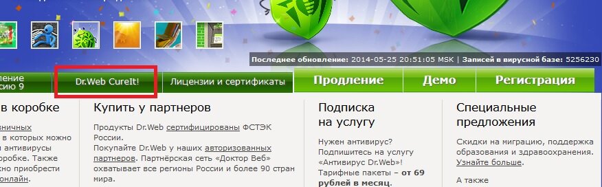 Теперь перейдем в раздел "Dr Web Cureit".