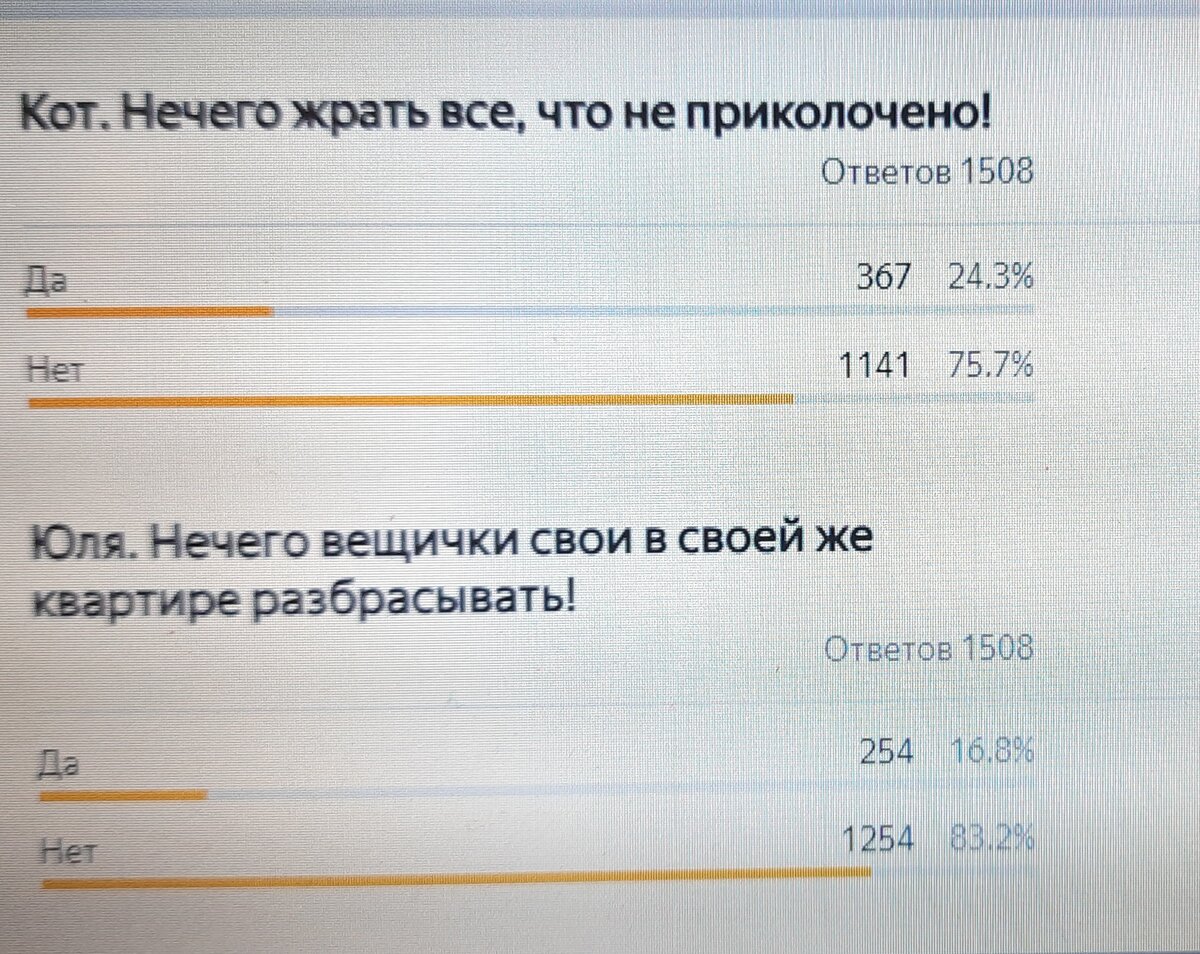 Я, конечно, никого не хочу пугать, но... Как только Сашка отжалел мне запасную зарядку от ноута (по долгу его службы, дома полно запчастей и проводочков 🤦♀️🤦♀️🤦♀️), мы с котом пошли смотреть опрос. Он едва ли не вперед меня сунулся в ответы. И это при том, что вроде как должен чувствовать вину за сожранный провод предыдущего зарядного устройства. Это я к чему.. 367 человек. Настоятельно рекомендую сменить место жительства, и на всякий случай уладить все дела)) Шучу, конечно. Но если что, кошачьи адвокаты подскажут, как грамотно имущество перевести в кошачий паштет)))