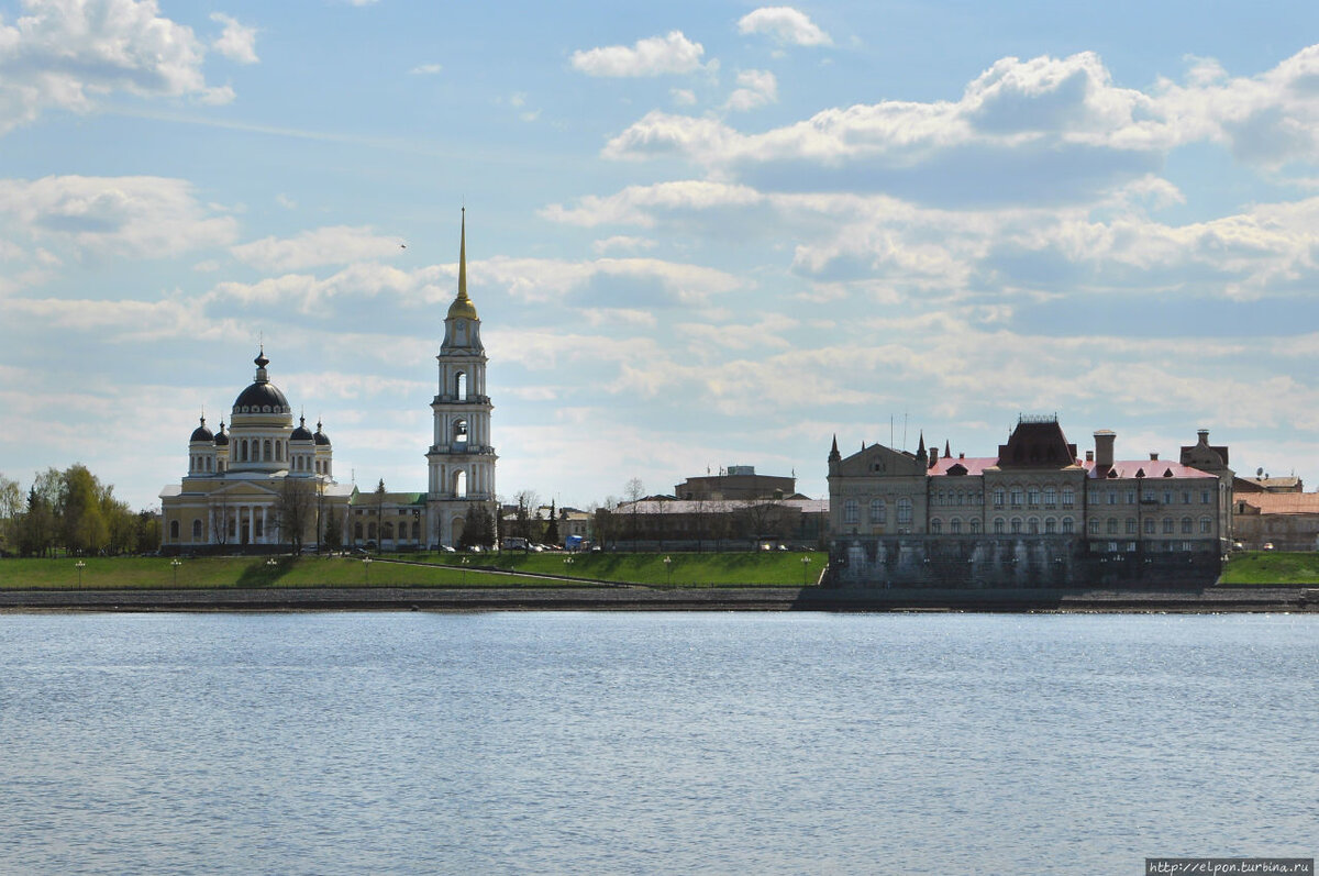 Мост через Волгу построен в Рыбинске в 1963 году. Теперь он тоже стал хорошо-узнаваемой достопримечательностью города. С моста можно в еще раз полюбоваться панорамой Рыбинска.Несомненно, ключевое место в этой панораме принадлежит комплексу Спасо-Преображенского собора с колокольней.