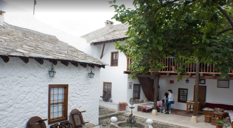 Когда-то он был домом турецкого губернатора Мостара. Здание окружено тенистым садом с фонтанами во внутреннем дворе. вымощенном галькой в виде круглых узоров, представляющих пять ежедневных молитв мусульманина. Выстроенное из камня двухэтажное здание побелено и поддерживается деревянными сваями. нависающая крыша была предназначена для затенения нижних этажей.