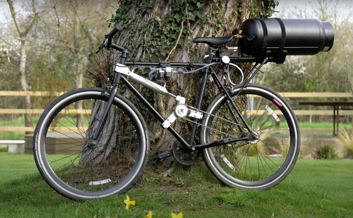 Вело-любитель и изобретатель из Великобритании Том Стентон решил не ограничиваться только созданием электробайка собственной сборки, а собрать нечто иное. Поэкспериментировав с аэродинамическими моделями, английский выпускник аэрокосмического факультета пришел к идее использовать сжатый воздух в качестве движущей силы на своем велосипеде.