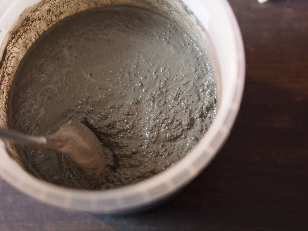 Замешиваем бетонную смесь в ведре согласно инструкции до консистенции сметаны.