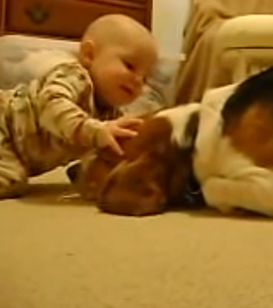 Бигль в течение нескольких месяцев не допускался к появившемуся в доме ребенку. Родители боялись реакции четвероногого на младенца.