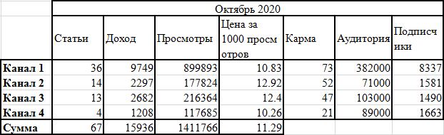 Итоги своих каналов за сентябрь я подводил здесь, а сейчас поделюсь своими доходами за октябрь 2020.