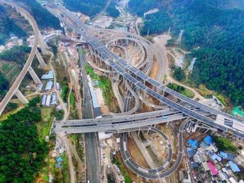 Дорожная развязка «Цяньчунь» - это массивный дорожный узел, который состоит из 18 эстакад в 8 направлениях на 5 уровнях, самая высокая из которых находится на высоте 37 метров над землёй.