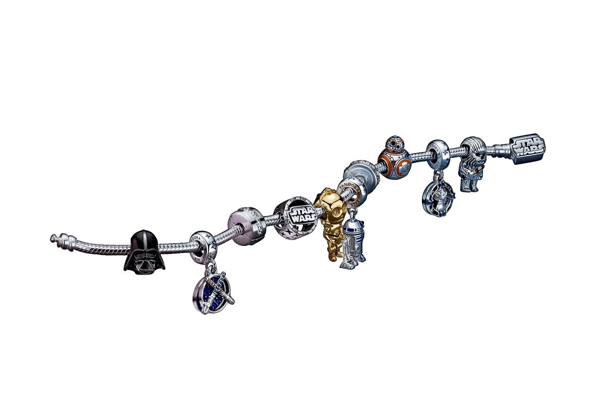 Коллекция состоит из 12 украшений — браслет и набор шармов, героями которых, разумеется, стали персонажи знаменитой саги «Звёздные войны». Среди них Чубакка, магистр Йода, R2-D2, Дарт Вейдер, принцесса Лея, шарм (подвеска — прим. ред.) с логотипом «Star Wars» (который вышел