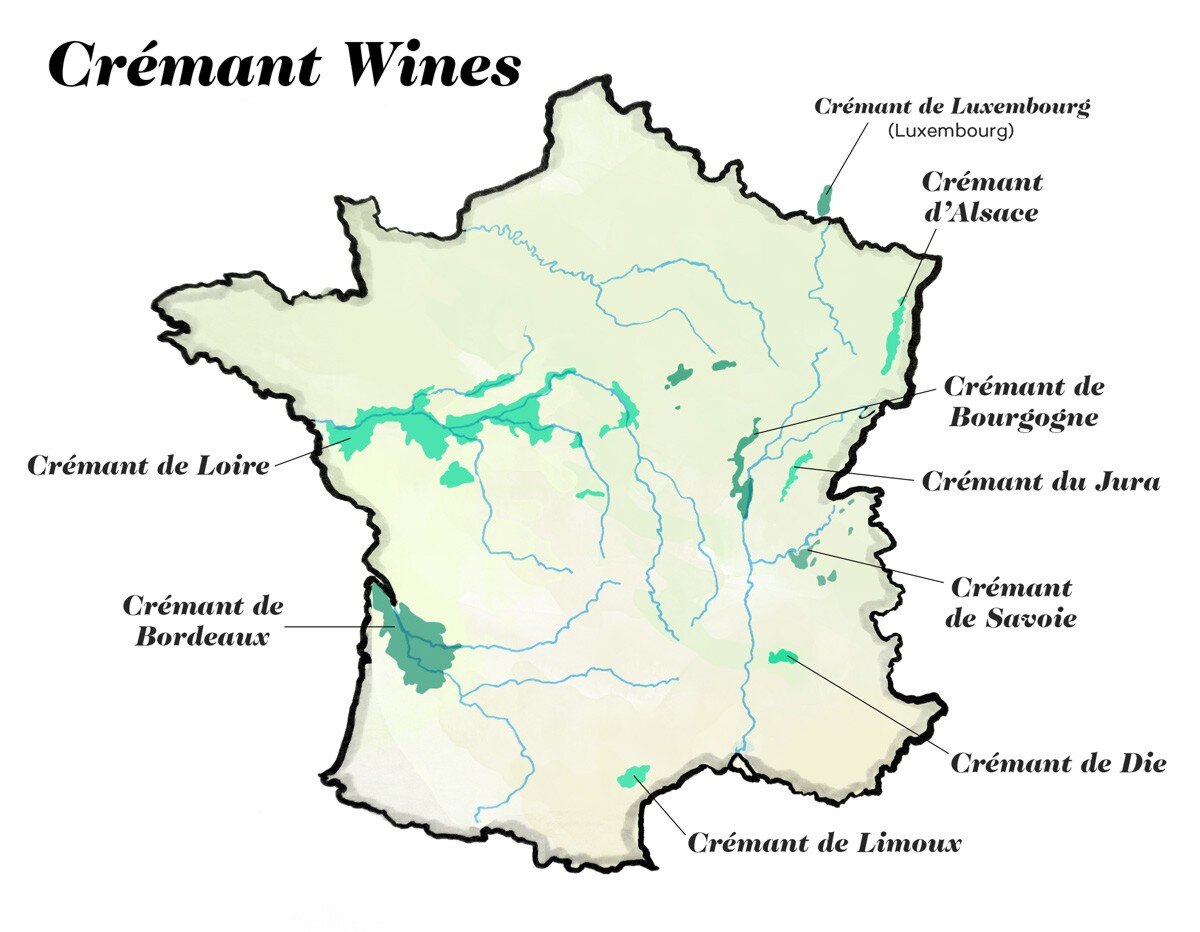 Crémant du Jura, Crémant de Savoie, Crémant de Die и Crémant de Bordeaux