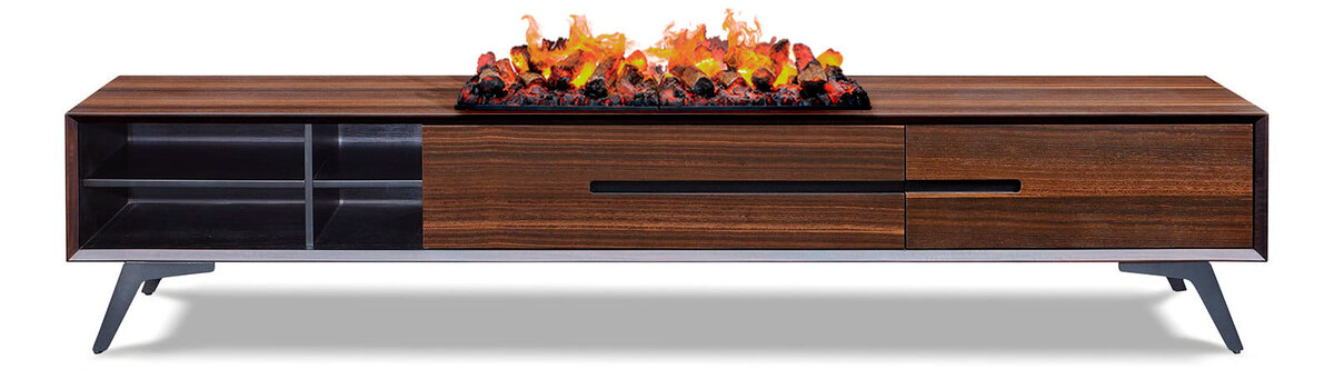 Варианты с отрытым огнем и горизонтальным размещением также подходят для тумб под телевизором или рядом с ним. Более того, это один из самых популярных сегодня вариантов размещения камина в мебели.