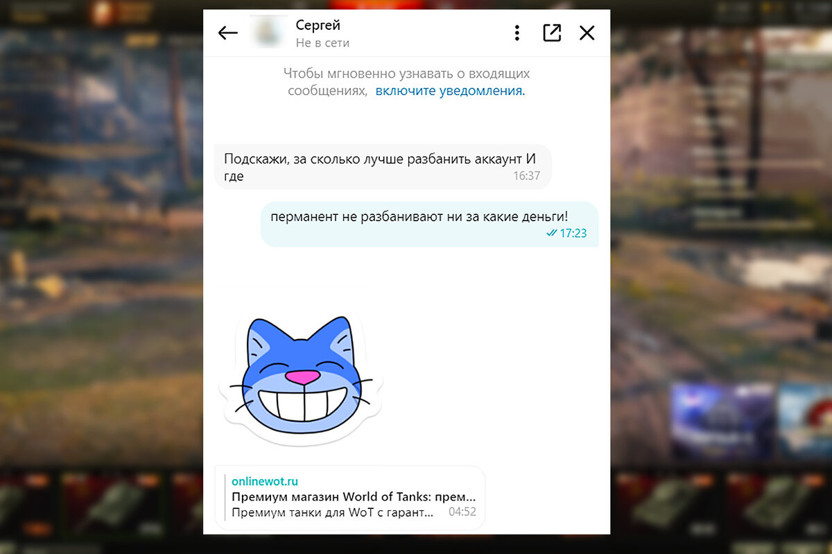 Ну, очевидно же, что это мошенники, WG никогда не будут продавать всяких чифов и Об.279, да еще и за такую цену, так и пишу Сереге. На что у него сразу несколько аргументов: