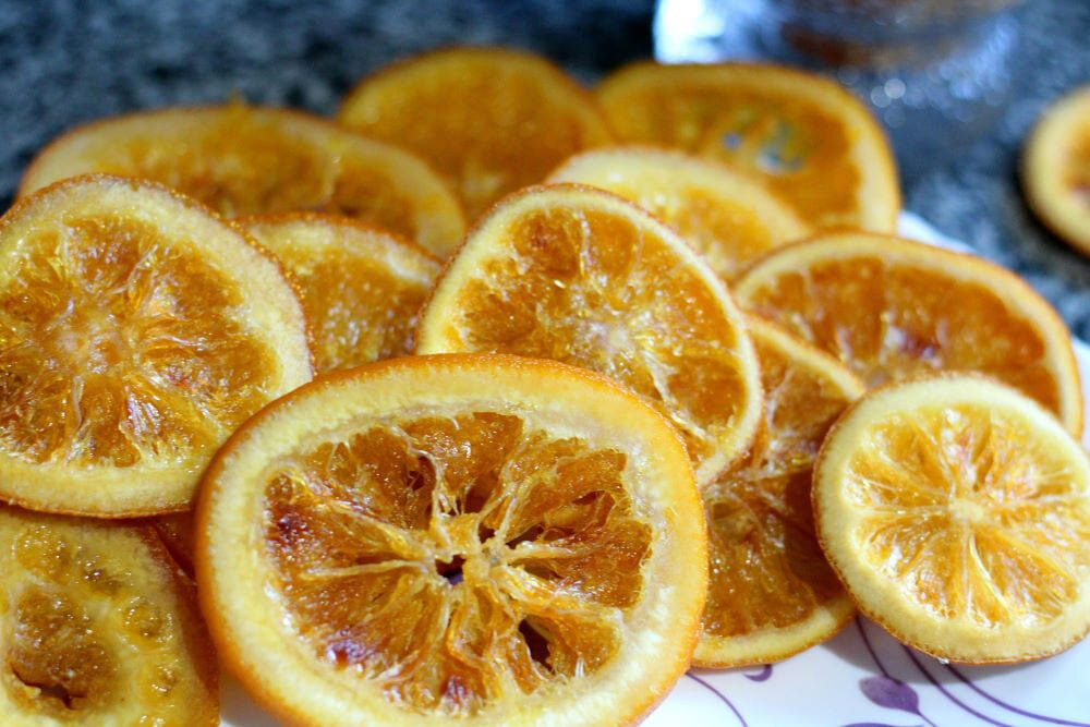 Тонкие и полупрозрачные дольки апельсина выглядят очень аппетитно. Их можно подать к кофе и чаю, использовать как полезный перекус в пути или офисе. Также они идеально подойдут для украшения рождественской выпечки и десертов. Это лакомство обязательно понравится детям.