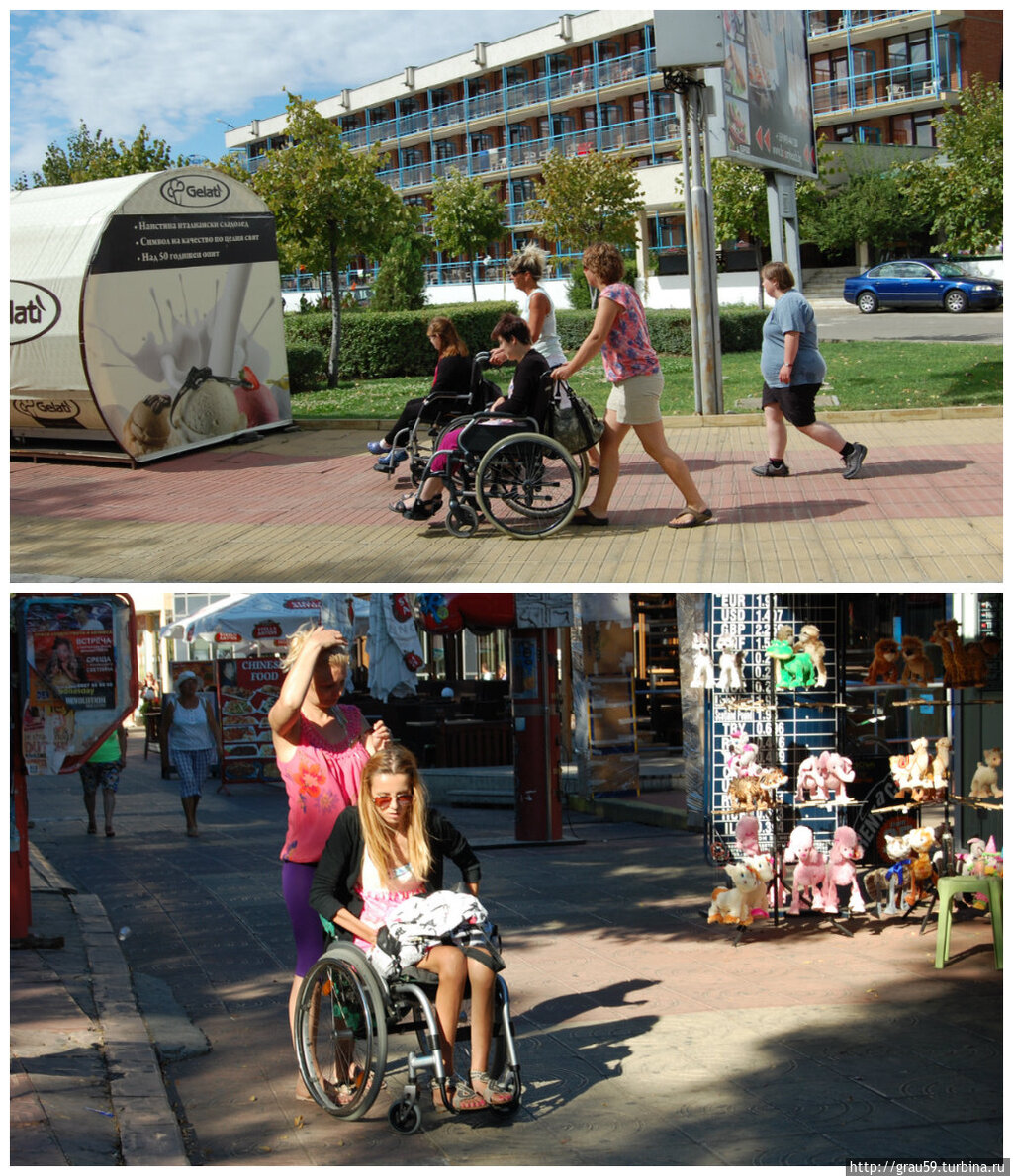 Но если на Кипре мне встречались инвалиды с сопровождающими, то по Солнечному Берегу инвалиды путешествовали как в колясках с сопровождающими, так и самостоятельно с тросточками для облегчения ходьбы.