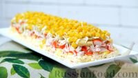 Сегодня приготовлю слоеный крабовый салат. Такой салат – мой фаворит, если речь идет о сочетании крабовых палочек и кукурузы. Он очень сочный и пикантный.