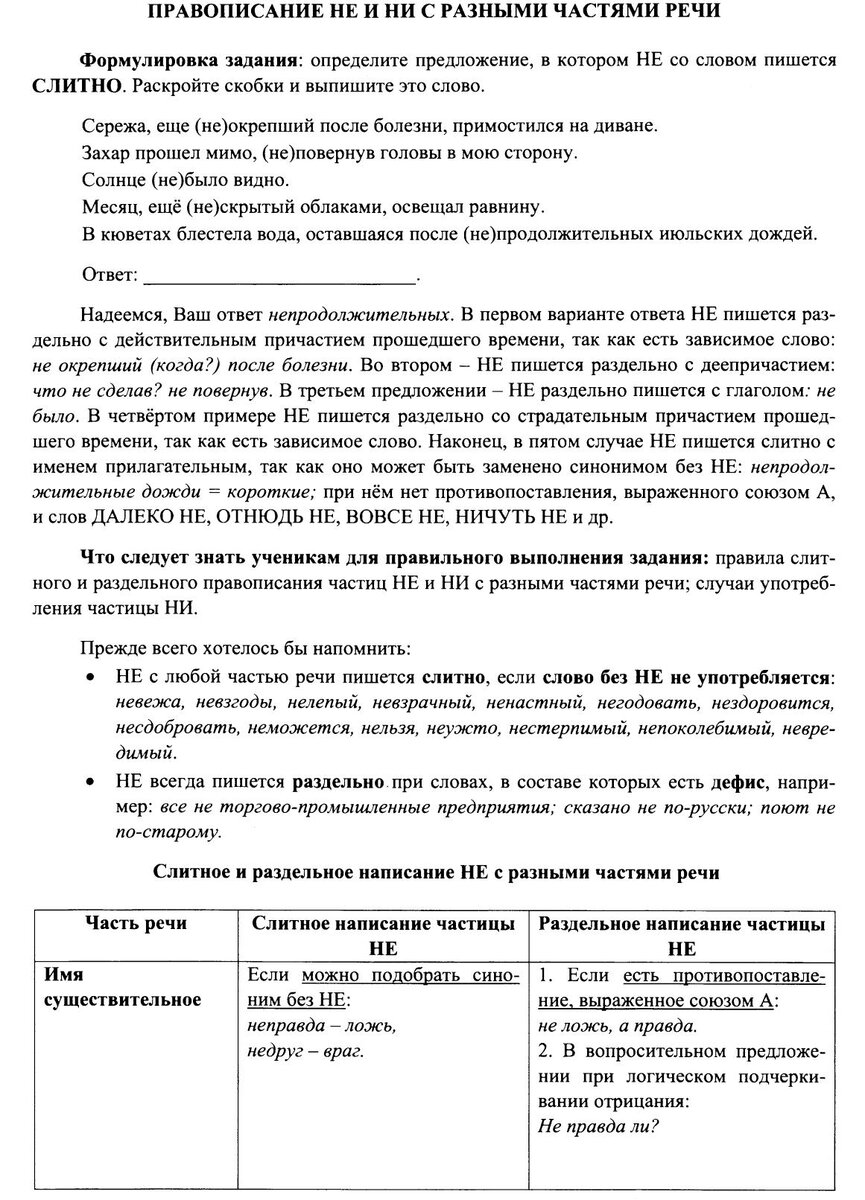 Правописание НЕ и НИ с разными частями речи