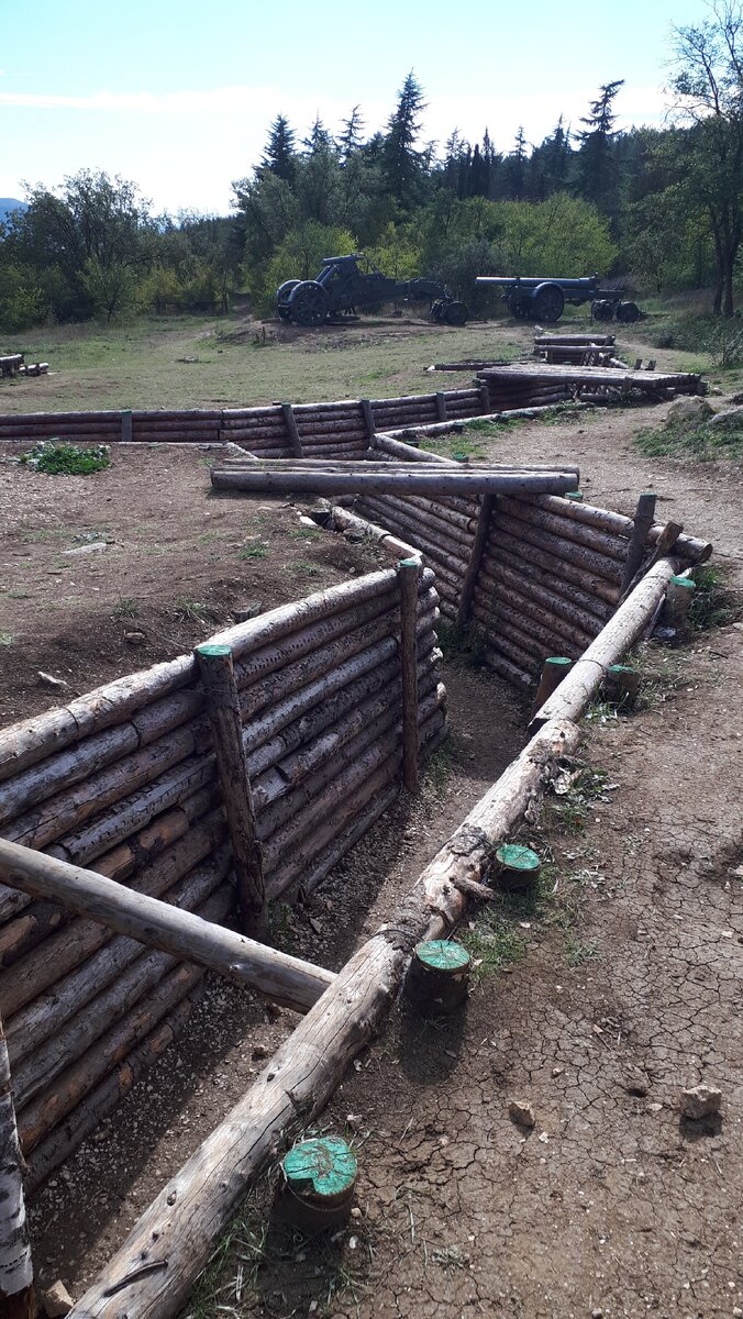 Далее меня поразило еще одно место на Сапун-горе, а именно, восстановленные позиции, которые когда-то занимали солдаты. Сначала их занимали наши, затем немцы. Подходишь к зданию Диоармы, смотришь вниз на панораму местных сел и городов, открывающуюся сверху и видишь внизу склоны, сплошь изрытые окопами и блиндажами. И знаете, что больше всего вызывает интерес и чувство, что ты сам невольно прикасаешься к событиям тех лет – позиции настоящие, не бутафорские для антуража, а самые, что ни на есть, настоящие. Именно в этих окопах когда-то воевали наши деды, за нашу с вами свободу. Именно в этих окопах многие из них погибали.