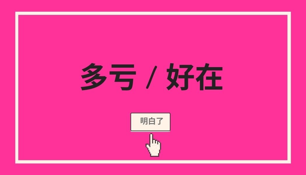 Указывает на положительный фактор, который уже был и помог в сложной ситуации. Менее эмоциональный, чем 幸亏. ✏️ Примеры: Разница между 幸亏 и 好在: 多亏……,没有发生的事情。(благодаря...., событие, которое не произошло). 好在……,发生的事情。(благодаря....., событие, которое произошло). 💡 Вывод: