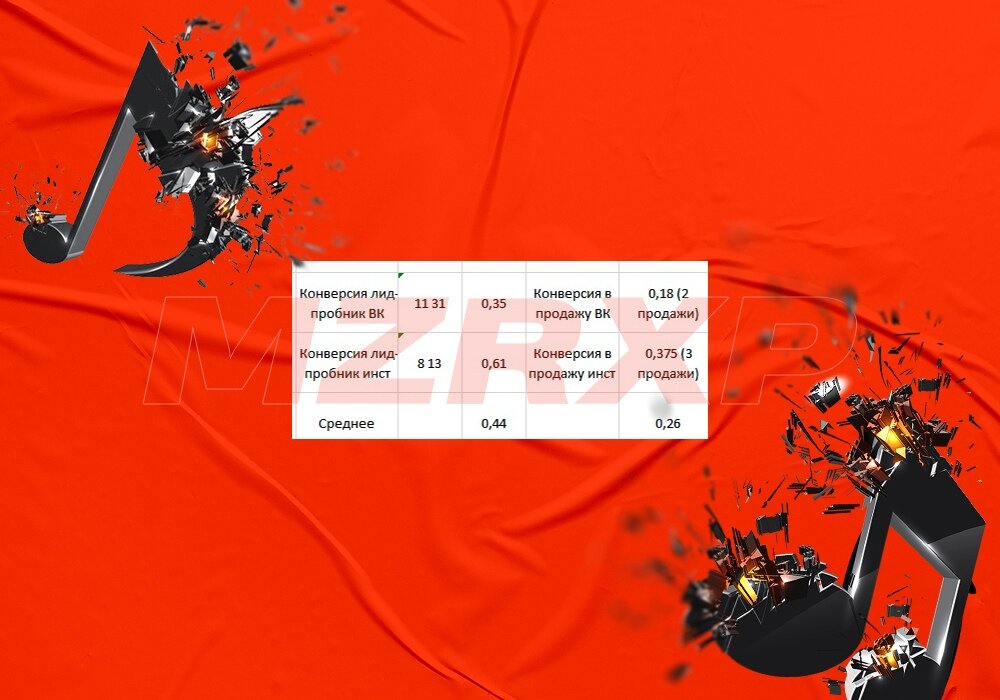 А это статистика конверсии в продажу с вк и инсты, после того как был внедрена наша структура продающего пробного урока. Средняя конверсия с ВК и Инстаграм — 26%