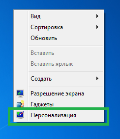 1. На рабочем столе нажимаем правую кнопку мыши и выбираем пункт "Персонализация":
