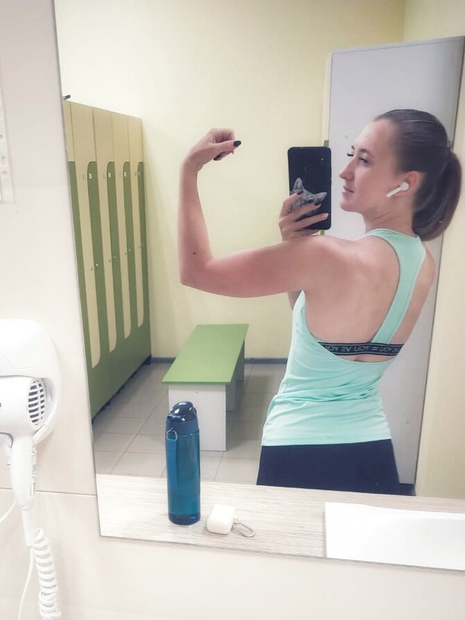 Мне нравится, что я могу сконцентрироваться на минуту или несколько минут, собраться с силами и сделать мощный рывок. Первое время я жалела себя, где-то халявила, недоделывала, а теперь мне нравится поднимать планку, бросать вызов себе. Если тренер говорит: 8-12 раз, я стараюсь сделать 12. Мне не надоедает, я с радостью встаю рано и еду в зал, я не нахожу отмаз, чтобы этого не делать, мне в кайф! Сейчас у меня первый раз в жизни нет цели похудеть, обрести какие-то офигенные бицепсы. Пока что я просто прислушиваюсь к своим ощущениям, радуюсь этому обретенному "движению", наслаждаюсь процессом, приятно удивляюсь, когда жму 50 кг ногами там, где ещё три месяца назад еле-еле делала подход без веса.