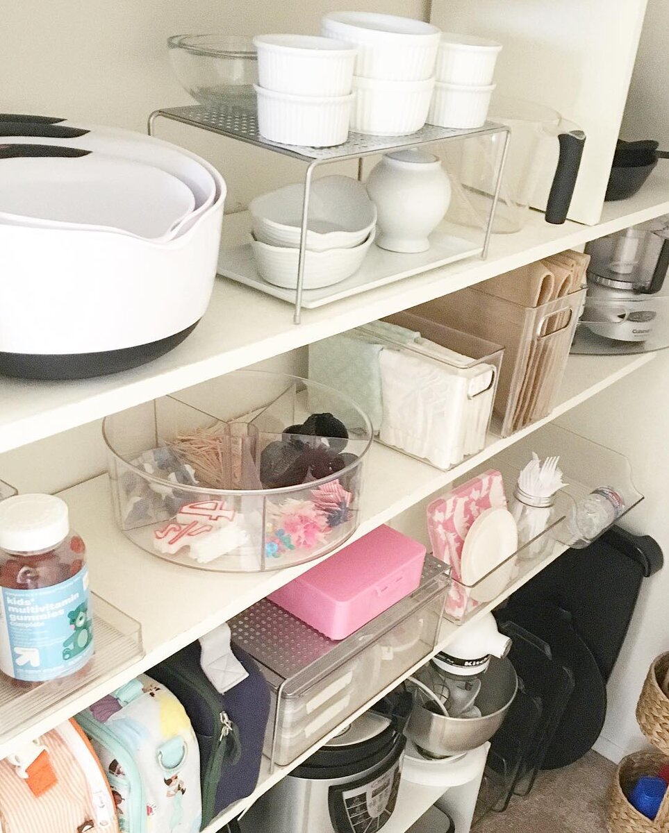 Пластиковые контейнеры или небольшие корзинки. Различных размеров и модификаций. Нужны для того, чтобы разделять предметы между собой и по категориям, чтобы каждая категория вещей была на своем месте.