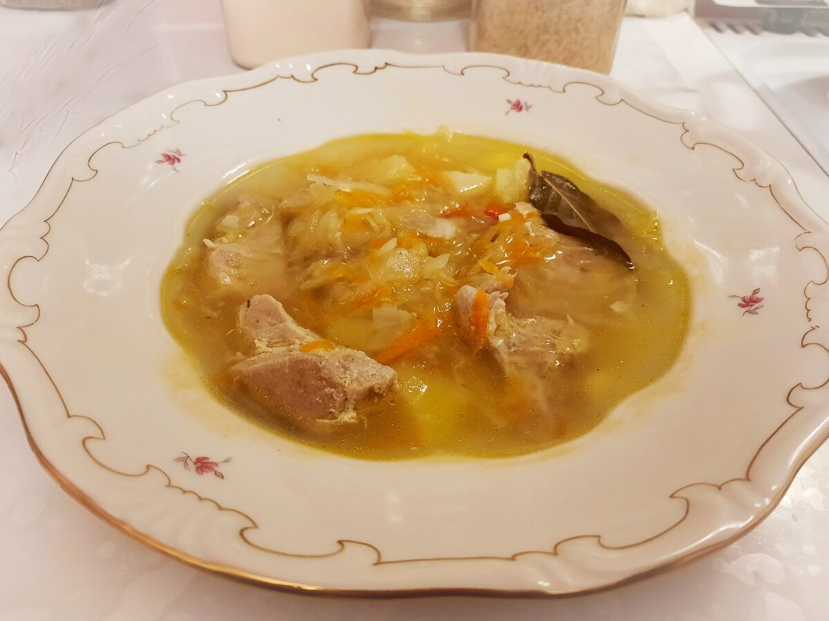 Я очень люблю щи именно с кислой капустой, хочу и с Вами поделиться рецептом, варить будем на свином окороке. В качестве базы взят рецепт ГОСТ, но бульона я брала больше, мы не любим, чтобы ложка стояла, выбираем золотую середину. В моем детстве щи мама варила без томатной пасты, я делаю так же. Поехали!