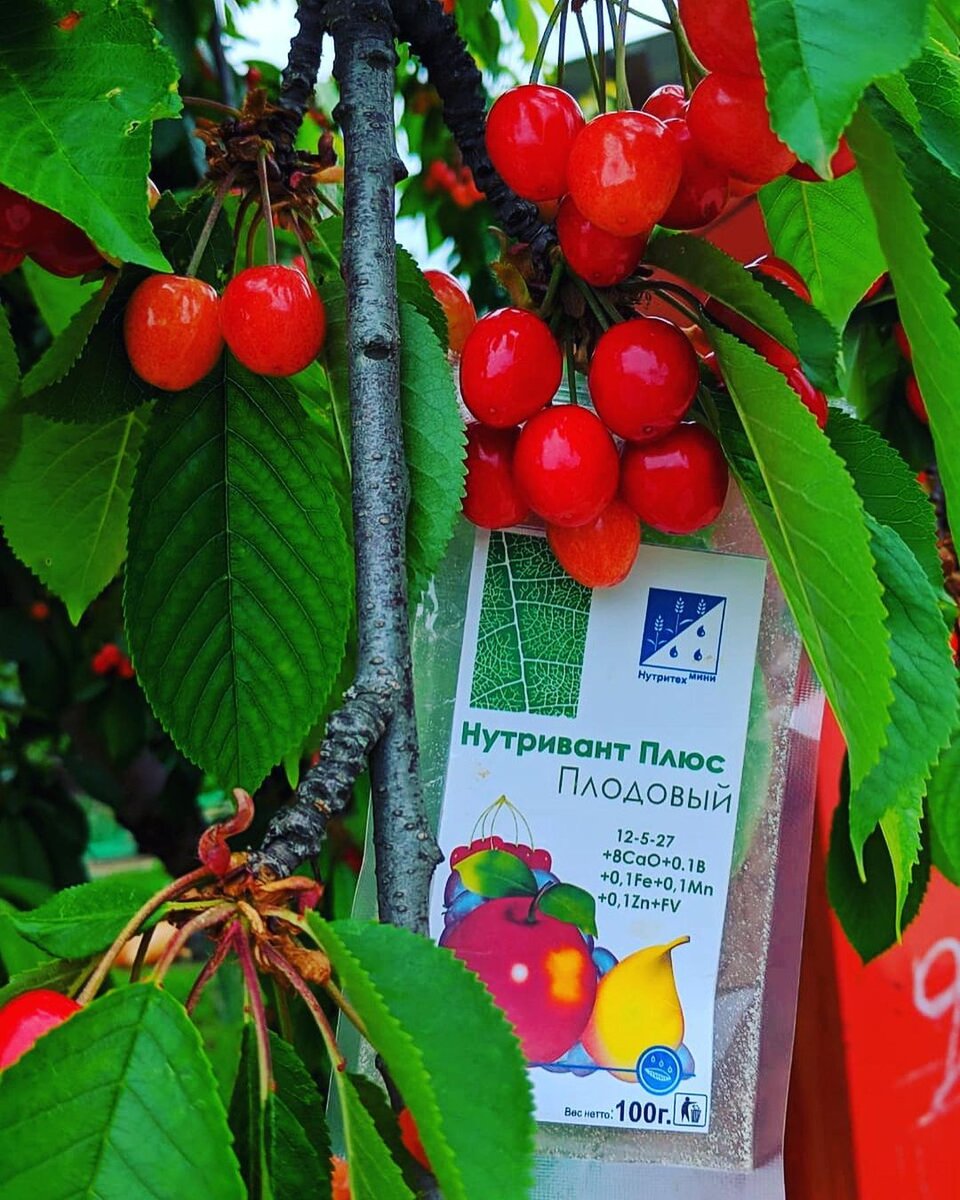 Нас часто спрашивают: "Применяете ли вы сами свои удобрения?" Да , конечно. Ведь мы уверены в качестве поставляемой продукции , ее экологичности и практической пользы для растений. Ведь им , также как и человеку, нужны питательные вещества и микроэлементы, каждый из которых важен и нужен на определённой стадии роста . На фото пример применения удобрения "Нутривант Плюс Плодовый" на черешне в