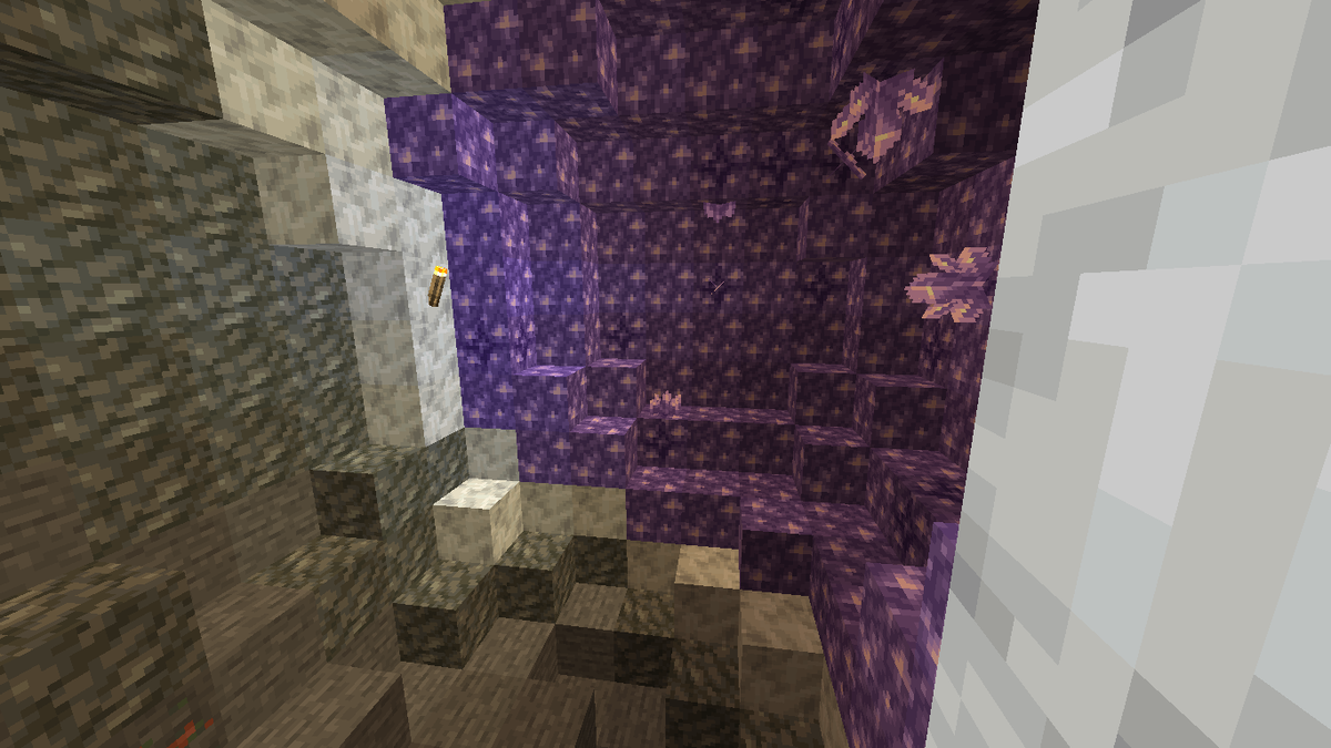 Теперь под землёй может заспавниться аметистовая жеода. Там можно добыть кусочки аметистов, которые используются в крафтах (о них ниже).