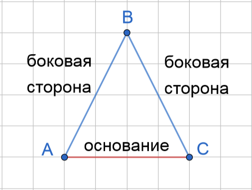 Равный стороны называются боковыми сторонами, а третья сторона - основание.