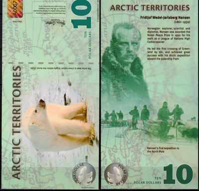 Деньги бывают разные. В том числе и те, которыми нельзя расплатиться. Но их можно сохранить в коллекции. А еще по ним можно изучать историю и географию. Именно к таковым относится арктический или полярный доллар. Вот такая купюра в 10 долларов хранится в моей коллекции.
