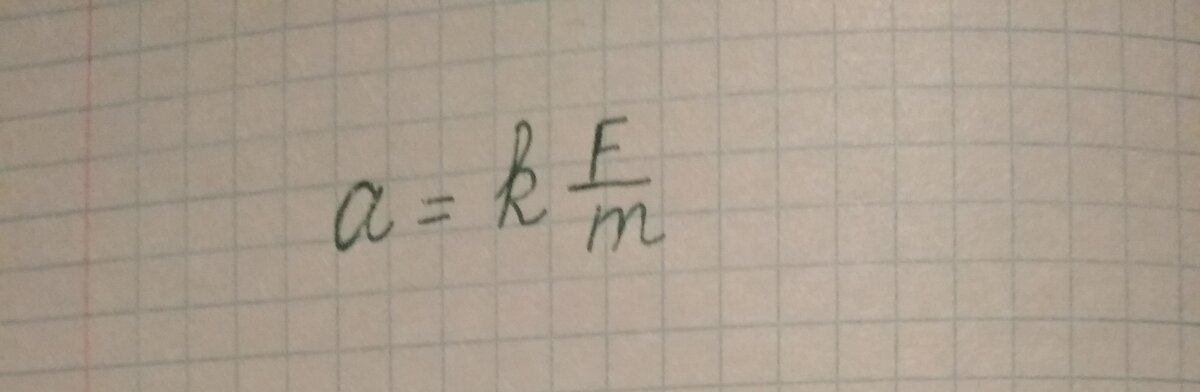 Ускорение тела в результате действия на него силы F пропорционально величине этой силы и обратно пропорционально массе тела m. Направление ускорения совпадает с направлением силы: