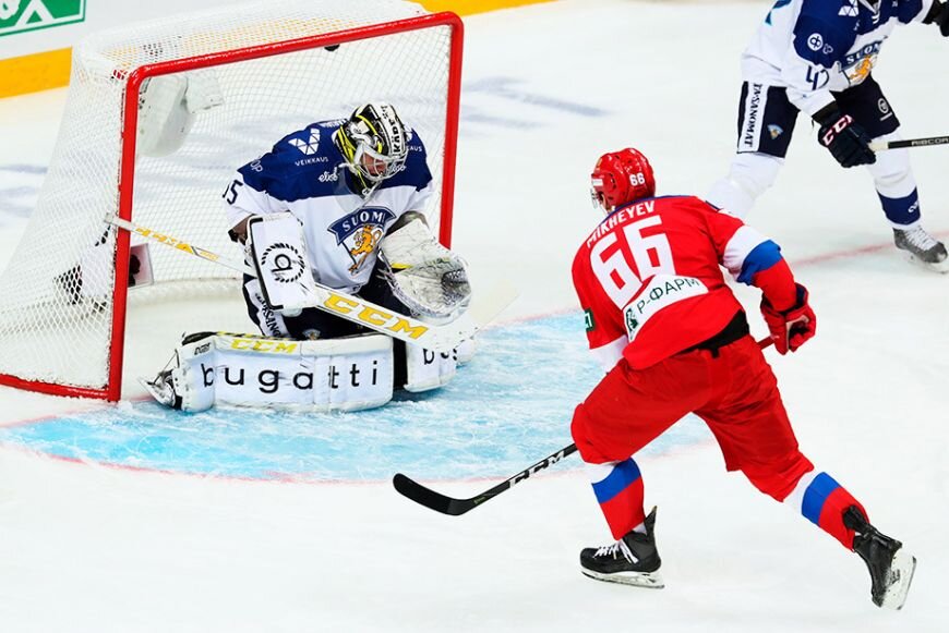 Сборная России одержала победу в дебютном матче против Финляндии на первом этапе Евротура-Кубка Карьяла.Встреча состоялась на стадионе «Хартвалл-Арена» в Хельсинки и завершилась с разгромным счётом 6:2 (3:0, 2:1, 1:1) в пользу России.