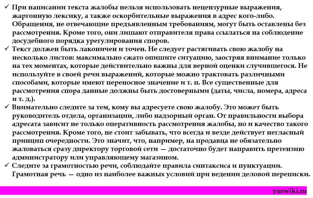 Самое главное правило — составлять всегда жалобу или претензию в 2-х экземплярах. При подаче бумаги в личном порядке, на Вашем обязаны поставить регистрационную отметку о том, что документ был принят. Это очень важно по 2-ум причинам.