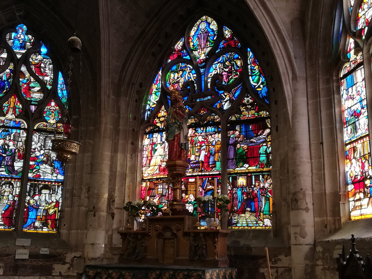 Кафедральный собор Святого Петра и Павла расположен в самом сердце Труа и является ярким шедевром готики, одним из самых красивых сакральных памятников Франции и Европы, его возведение было начато в 1208 г и закончено в 17 в. Здание имеет великолепный готический фасад и три огромные розы, украшенные 180 витражами с библейскими историями, хранит мощи святых Бернарда Клервоского и Малахии. В соборе я посмотрела выставку ценнейших церковных объектов и выставку современных церковных скульптур.