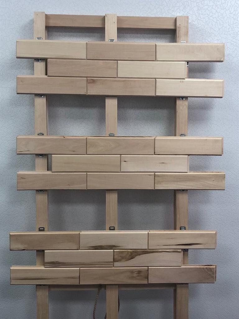 Монтаж паркета стенового производится на каркас. Для создания каркаса используются бруски толщиной до 4 см, которые крепятся к стене как вертикально, так и горизонтально на расстоянии 40 см. Крепят паркет металлическими кляймерами. В зависимости от назначения помещения между плашками и каркасом используются различные наполнители.