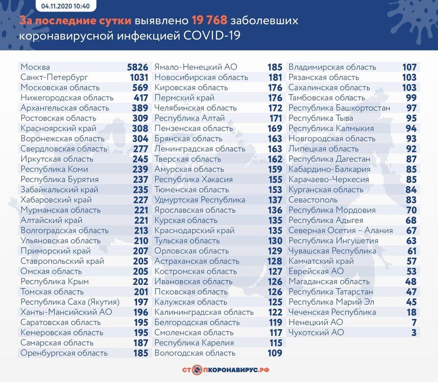 Число заразившихся коронавирусной инфекцией в России увеличилось за сутки на 19 768 человек. Такие данные приводит федеральный оперативный штаб по борьбе с CoViD-19. Это рекордное значение, которое более чем на тысячу превышает прошлый максимум.