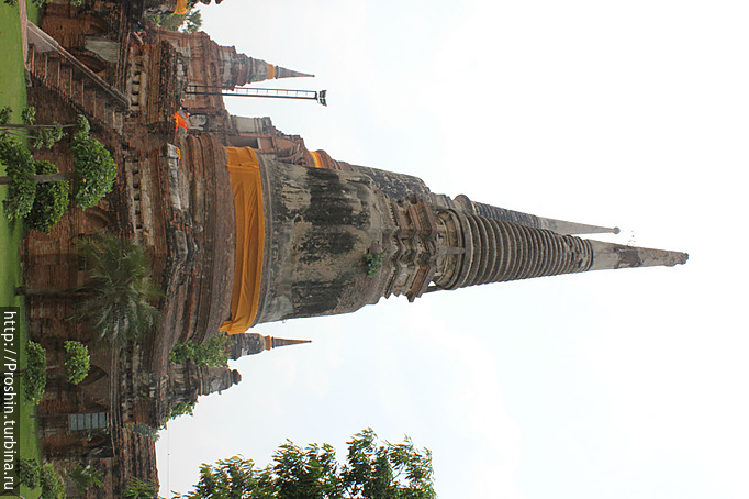 Видимый за несколько километров вокруг золотой чеди храма производит одно их самых сильных впечатлений от достопримечательностей Айюттайи. Король У-Тонг основал этот храм в 1357 году для монахов одного очень строгого ордена, которые возвращались после обучения в Шри-Ланке. Находящаяся около входа в храм и позднее отреставрированная статуя Лежащего Будды