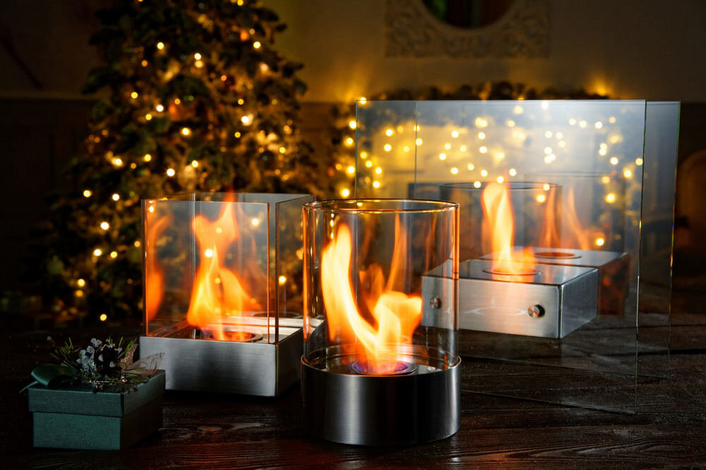 - Настольный биокамин. Эти привлекательные аксессуары стоят недорого, зато умеют создавать уют и тепло в доме. Биокамин способствует релаксации – можно часами наблюдать за языками пламени, при этом не ощущать запаха дыма в воздухе.