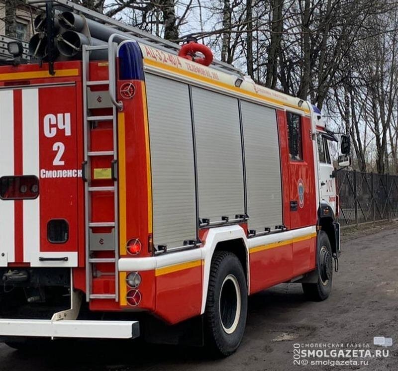 По данным ГУ МЧС России по Смоленской области, сообщение о возгорании поступило на диспетчерский пункт в 13:05. На вызов отправились сразу 9 огнеборцев, 2 пожарные машины и автолестница.