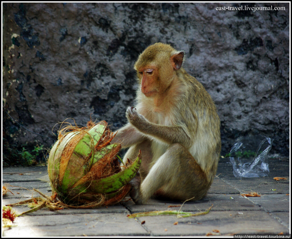 Не двусмысленный вокзальный намек сразу дает понять разине-туристу, кто является хозяином города. Обезьян вы будете встречать повсюду. Водители уступают им дорогу, продавцы подкармливают со своих съестных тележек, туристы беспрестанно фотографируют. Лопбурийские обезьяны ощущают себя полноправными жителями города. Они не страшатся людей, не боятся машин, раскачиваются на электропроводах, как на лианах, отбирают у прохожих бутылки с минералкой и кепки, разоряют мусорки.