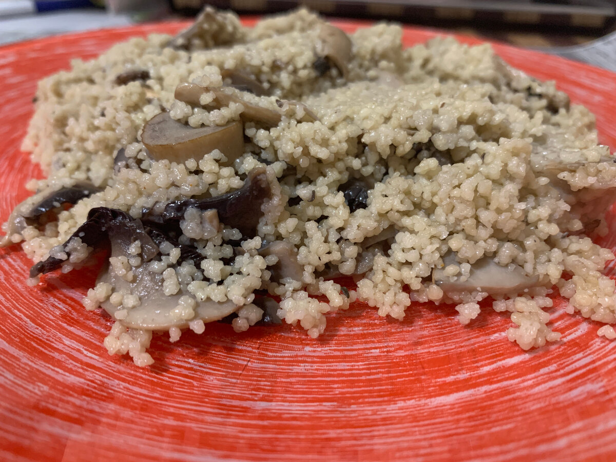 Спустя 20 минут вы получаете вкусный, мягкий и рассыпчатый КусКус с грибами.