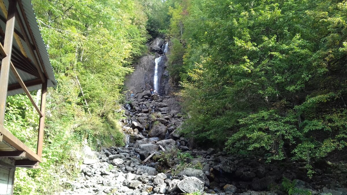 Сначала мы поехали к Молочному водопаду, где нам дали 10 минут посмотреть-пофотографировать. Но водопад был очень маловодный, меня он совсем не впечатлил. Может быть, весной он и более красив, но осенью он вот такой.