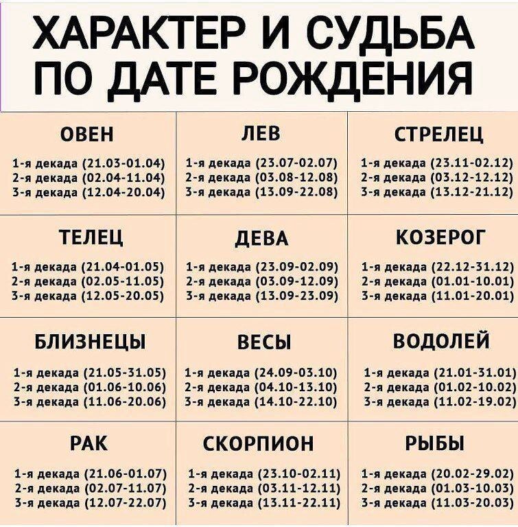 Судьба: Венера, управляющая этой декадой, наделяет людей, появившихся на свет в этот период, трудолюбием и скрытным характером.
