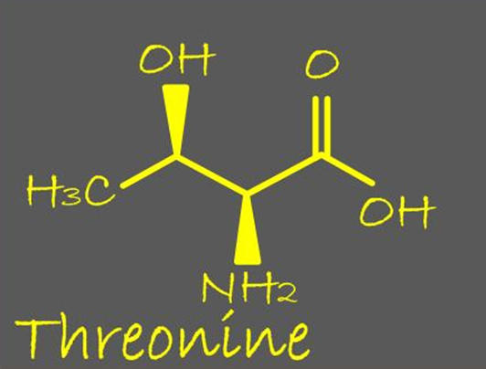 Треонин на одну углеродную последовательность длиннее серина, спиртовая ОН – группа присоединена к молекуле углерода в β-положении, придавая аминокислоте как гидрофильные, так и липофильные свойства, что позволяет молекуле растворяться как в воде, так и в жирах.