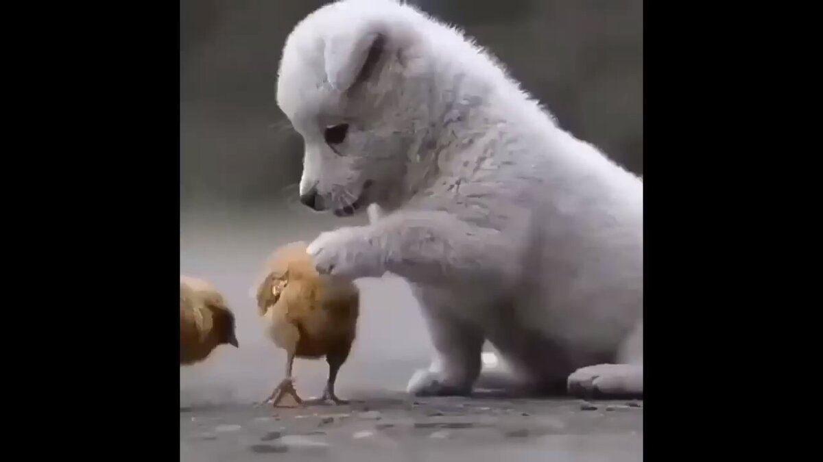 Однажды люди заметили как маленький щенок играется с цыплятами и засняли это на видео)