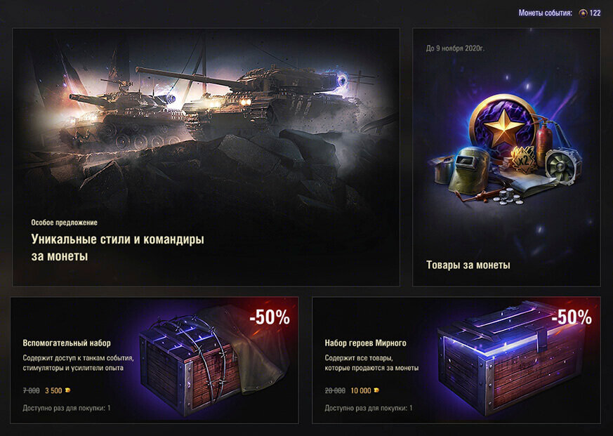 Бойцы!Подходит к концу игровое событие «Мирный-13». Многие из вас совершили десятки вылазок в Мирный-13, выполняли задачи и заработали множество наград. Среди них кредиты, опыт, медали и нашивки, стили, а также монеты игрового события.Успейте потратить их до 9 ноября 7:30 (МСК). После завершения «Мирного-13» все заработанные монеты будут списаны.
