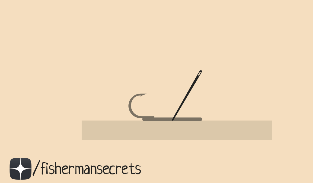 - Кладём коронку на дощечку, через отверстие вставляем подкопченную иглу под углом 45 градусов.