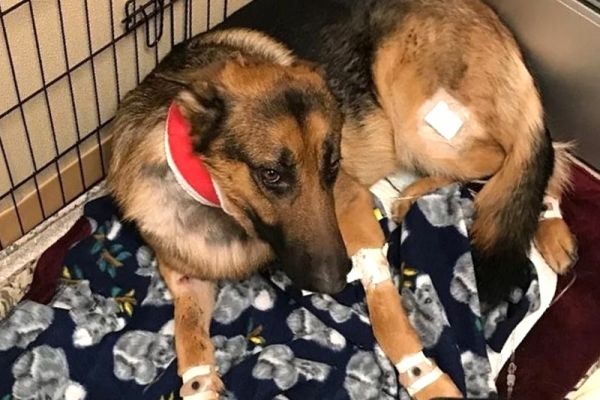 Пёс был на гране смерти ,но врачам удалось его спасти.