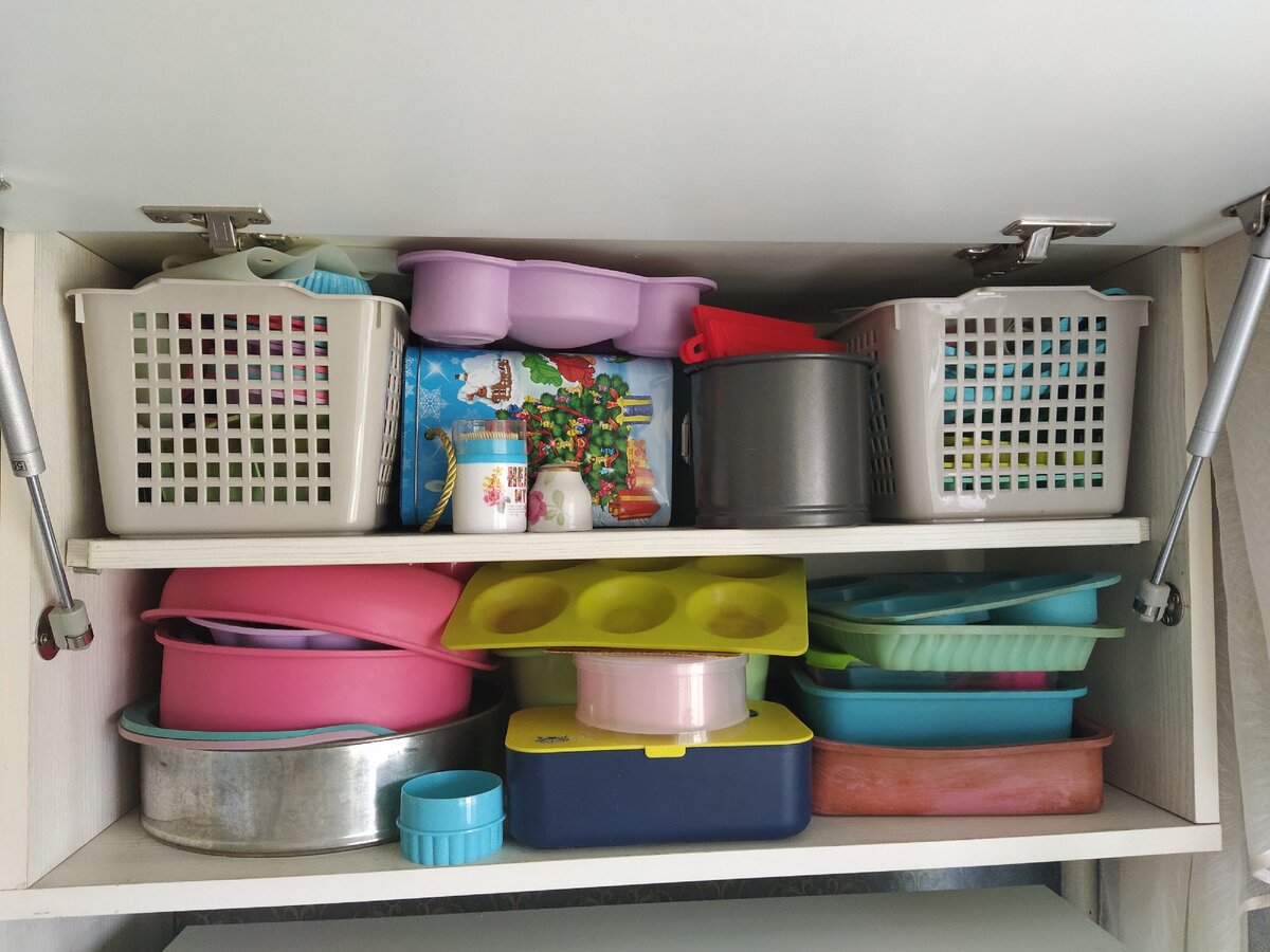 Много лет тому назад я увлекалась покупкой журнала "Изысканная выпечка". Не скажу, что много пекла, но это давало мне вдохновение и много новых форм для выпечки. Страсть со временем поутихла, но накопленные формы и журналы остались. "Хлам!" - скажете вы и может быть и будете правы, но эти формы нет-нет да используются. Плюс они греют мою душу. Я не хочу с ними расставаться! Для хранения этих редко используемых предметов кухонной утвари у меня был выделен шкаф над холодильником. И до недавнего времени он выглядел вот так: