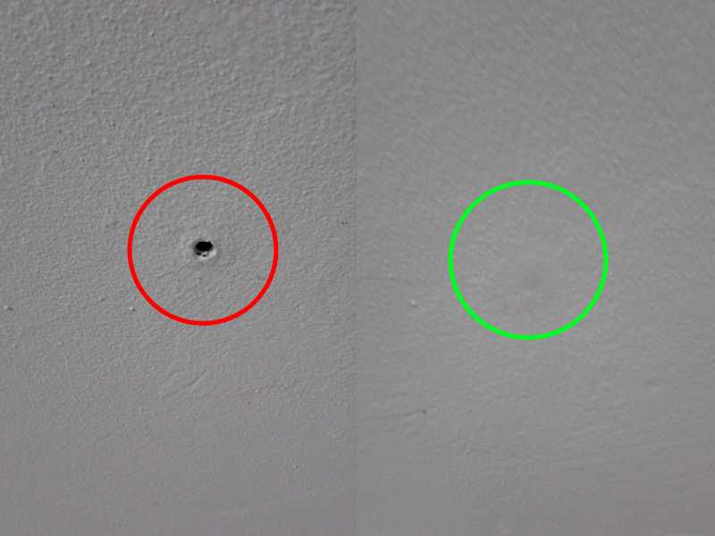 Нет ничего вечного. Когда на стене/потолке что-то висело, и мы это сняли, остается отверстие. Мелочь, но выглядит некрасиво. Можно, конечно, зашпаклевать и покрасить или переклеить обои. Но это не наши методы. Есть вариант попроще. Давайте покажу вам простой пример.